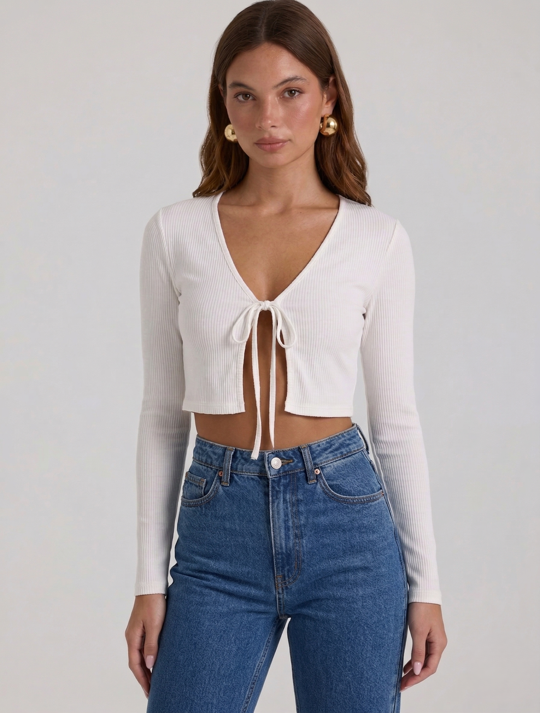 Cropped Diluxo Ribana Canelada Luna Amarração