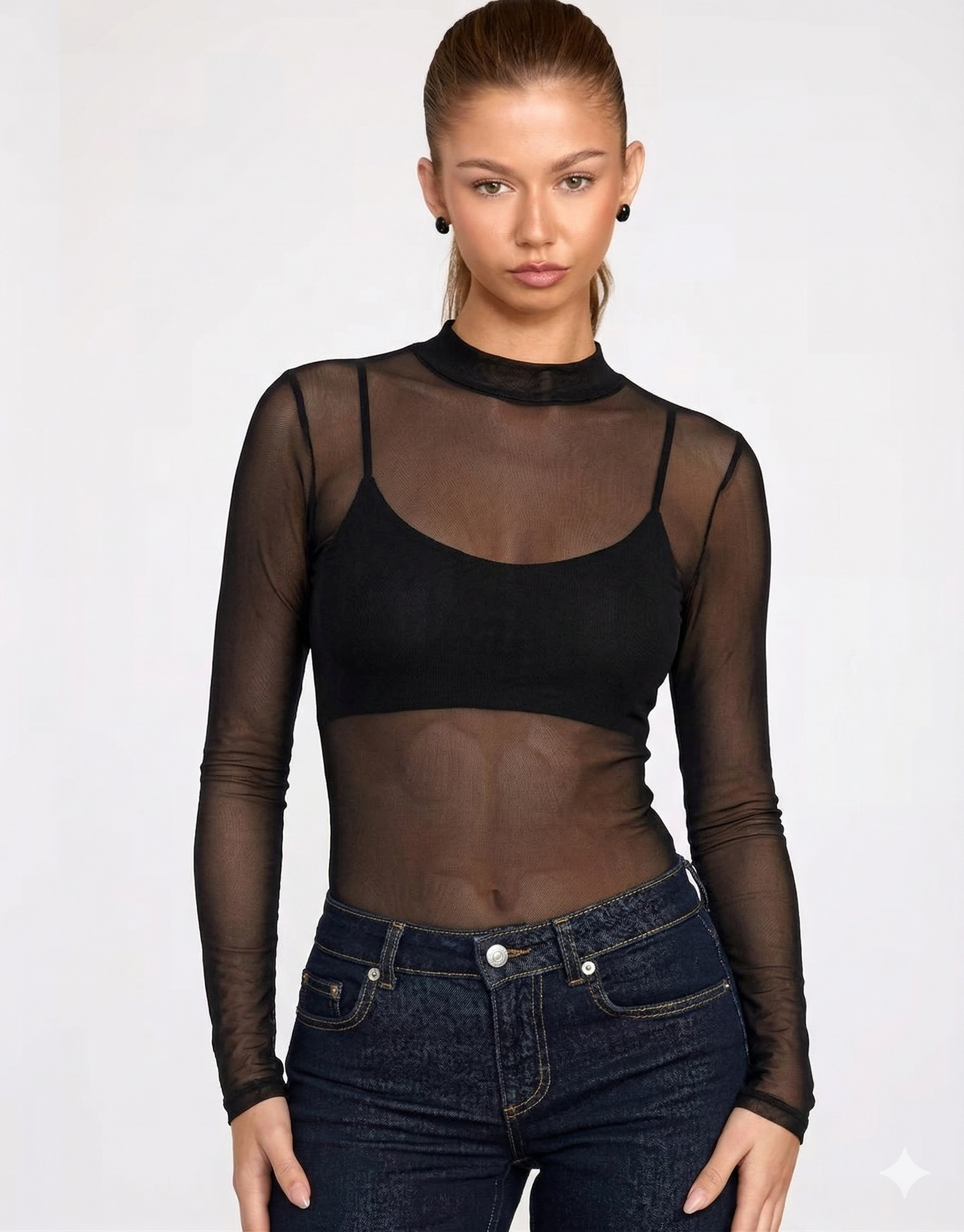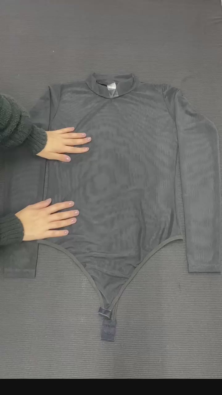 O body transparente de tule com manga longa é uma peça de lingerie ousada e sedutora. Com seu design sensual, o tule transparente revela sutilmente a pele, enquanto as mangas longas acrescentam um toque de sofisticação. É perfeito para momentos especiais, proporcionando um visual provocante e elegante. É uma escolha ideal para quem busca uma lingerie que combine ousadia e estilo.